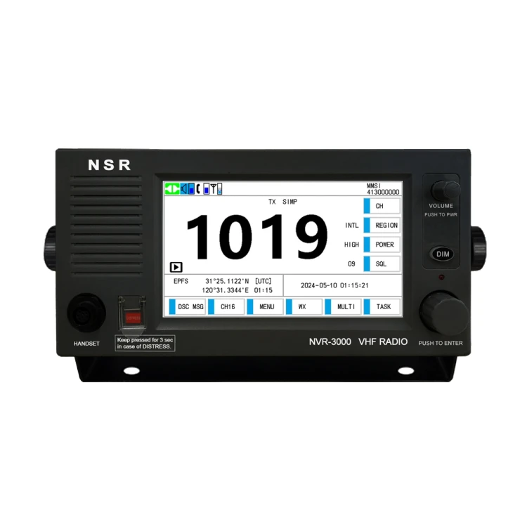 O NVR-3000 é um rádio VHF de nova geração e alta performance, equipado com DSC (Chamada Seletiva Digital) Classe A e projetado para atender aos mais recentes padrões da ITU e IMO. Ideal para compor o pacote GMDSS de embarcações nas áreas A1, A2, A3 e A4, este equipamento destaca-se pela sua grande tela LCD colorida de 7 polegadas com operação touch screen. O rádio oferece funcionalidades avançadas como suporte a canais de 4 dígitos, função de replay, ATIS e interfaces dedicadas para conexão com sistemas VDR e BAM/INS.